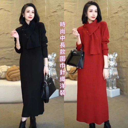 • 圍巾針織洋裝 NT$1189 【時尚中長款圍巾針織洋裝】單穿内搭都好美!時尚減龄,顯高顯瘦,寬鬆舒適,不挑身材!
