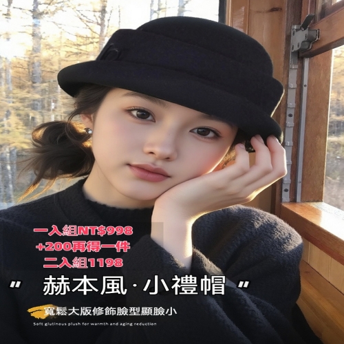 • 法式赫本風禮帽 NT$998 【法式赫本風禮帽】大頭大臉,輕鬆駕馭